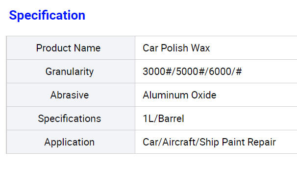 Car Polish Wax are made of special alumina abrasives, mixed with brightener, lubricant and other surfactants. They are suitable for the repair or beauty of paint, and can meet multiple effects of decontamination, repair, polishing and protection of paint.